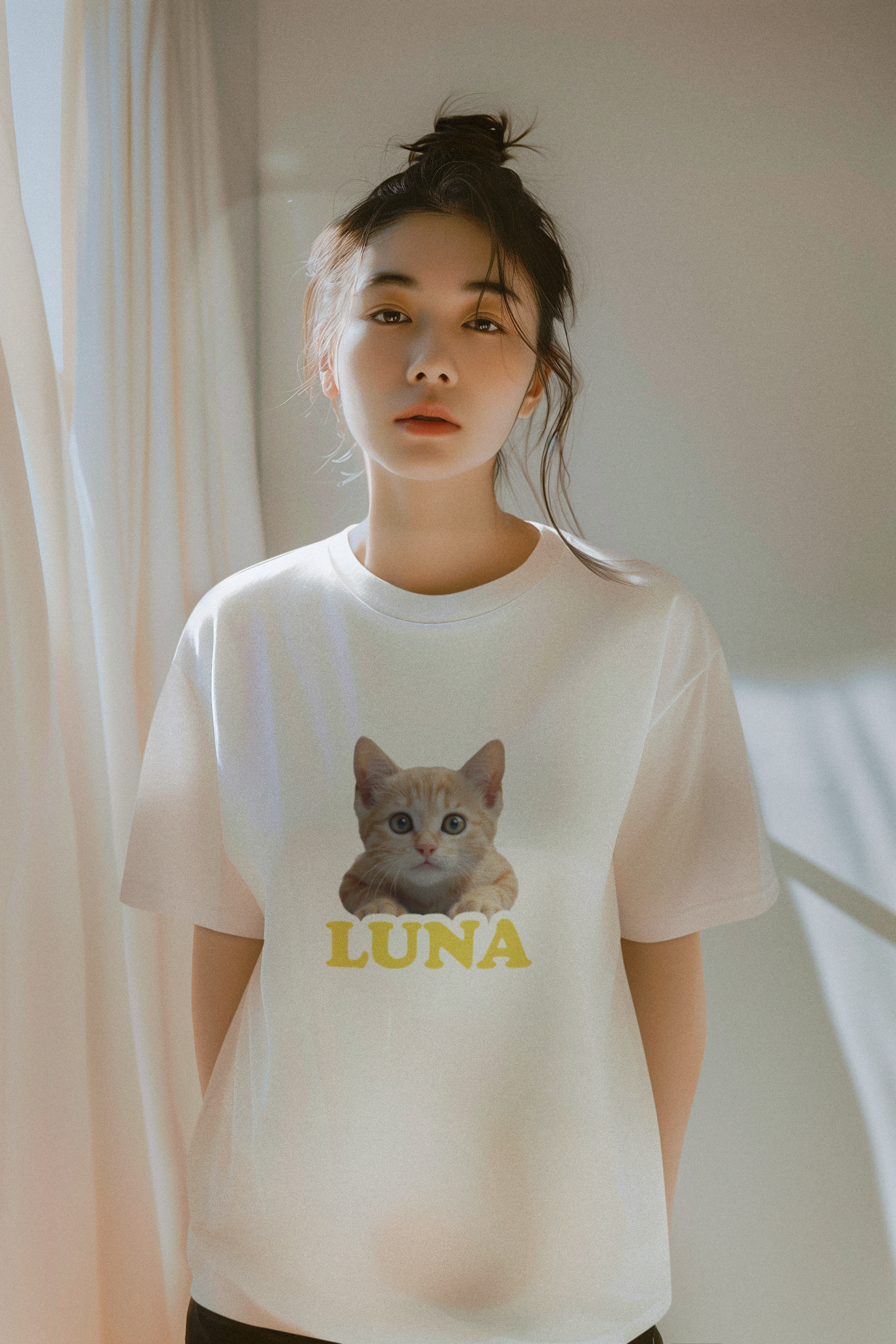 Celebrate your furry (or scaly or feathery!) friend with this personalized T-shirt featuring your pet’s photo and name. Whether it is a cat, dog, rabbit, or even a hedgehog, we turn your adorable companion into wearable art. Just send us a clear, front-facing photo and let us do the magic!